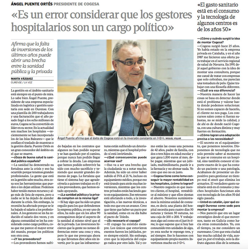 La Voz de Galicia: «Es un error considerar que los gestores hospitalarios son un cargo político»