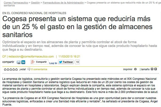 Correo Farmacéutico: Cogesa presenta un sistema que reduciría más de un 25 % el gasto en la gestión de almacenes sanitarios
