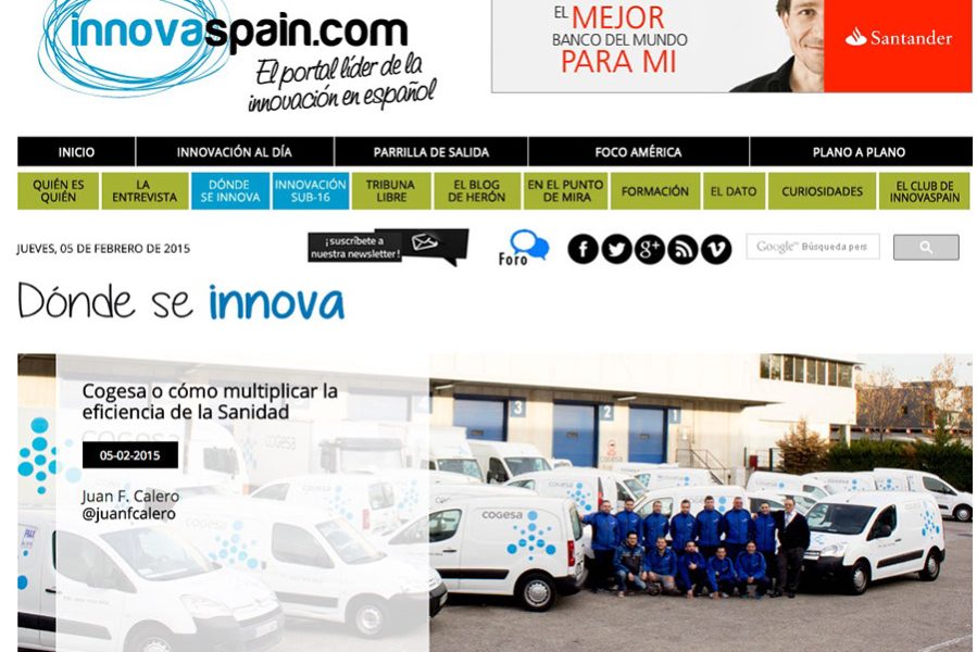 InnovaSpain, portal líder de la innovación en español, visita las instalaciones de Cogesa para conocer a fondo sus servicios y su historia con las explicaciones de Bernardino Martínez, subdirector general del Grupo Cogesa, así como de Alfonso Olivares y Fernando Martínez, directores técnicos de Logística Sanitaria y Biosanitaria, respectivamente. Medio: InnovaSpain Fecha: 02/05/2015