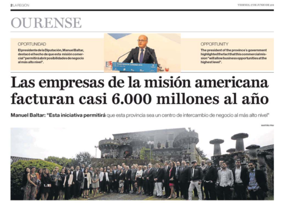 Un total de veinte empresas norteamericanas participarán en la misión comercial que promueve la Diputación de Ourense con Estados Unidos. Fecha: 16/06/2016